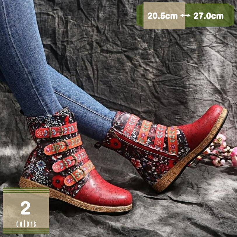 ハイヒール 民族風 ブーティ レディース 美脚 ヒール 7cm ショートブーツ 刺繍 花柄 ウェッジ・・・