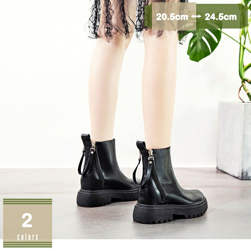 1000円OFFクーポン レディース サイドジッパー ブーツ 7cmヒール 厚底 身長アップ ウェッ・・・
