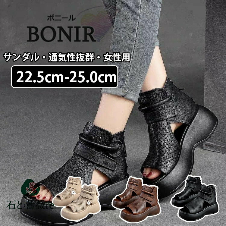 ブーツサンダル 豚革 レディース 夏ブーツ サマーブーツ 革 サンダル 厚底サンダル ウェッジソール・・・