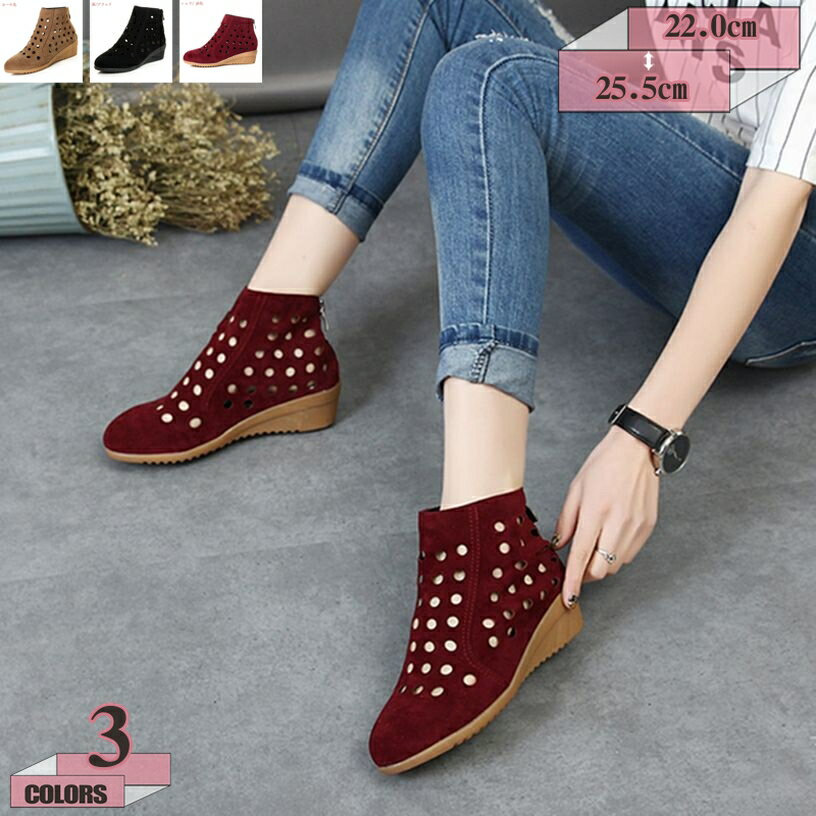 777円OFFクーポン 袴ブーツ ハロウィン ショートブーツ スエード ウェッジソール レディース ・・・