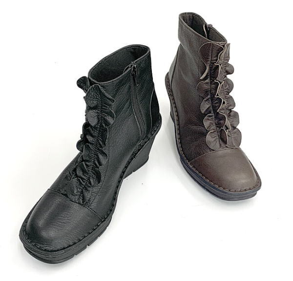In Cholje(インコルジェ)・足に優しい靴 厚底ウェッジフリル飾りブーティー(2021) 靴 ・・・