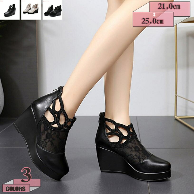 777円OFFクーポン サマーブーツ チュール ウェッジソール ブーティ レディース ショートブーツ・・・