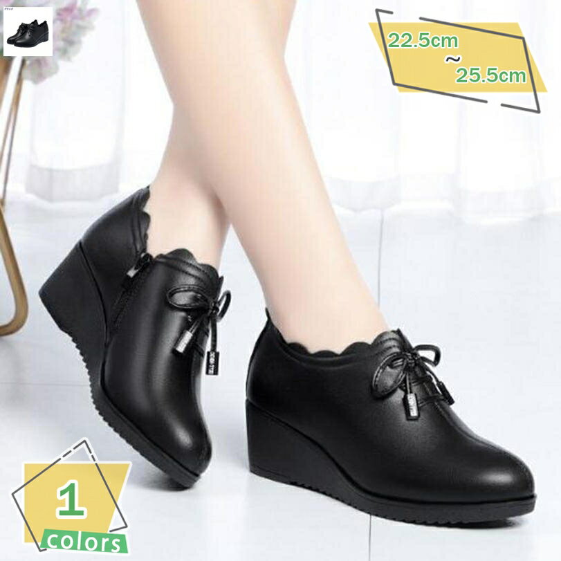 ブーティ 黒 ウェッジソール ローファー 本革 牛革 かっこいい 6.5cm 厚底 レザーシューズ ・・・