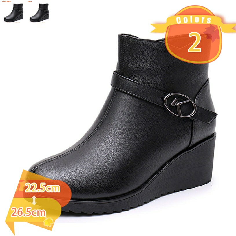 レディース ショートブーツ ブーティ ローヒール ママブーツ ウエッジソール 厚底 サイドジップ 美・・・