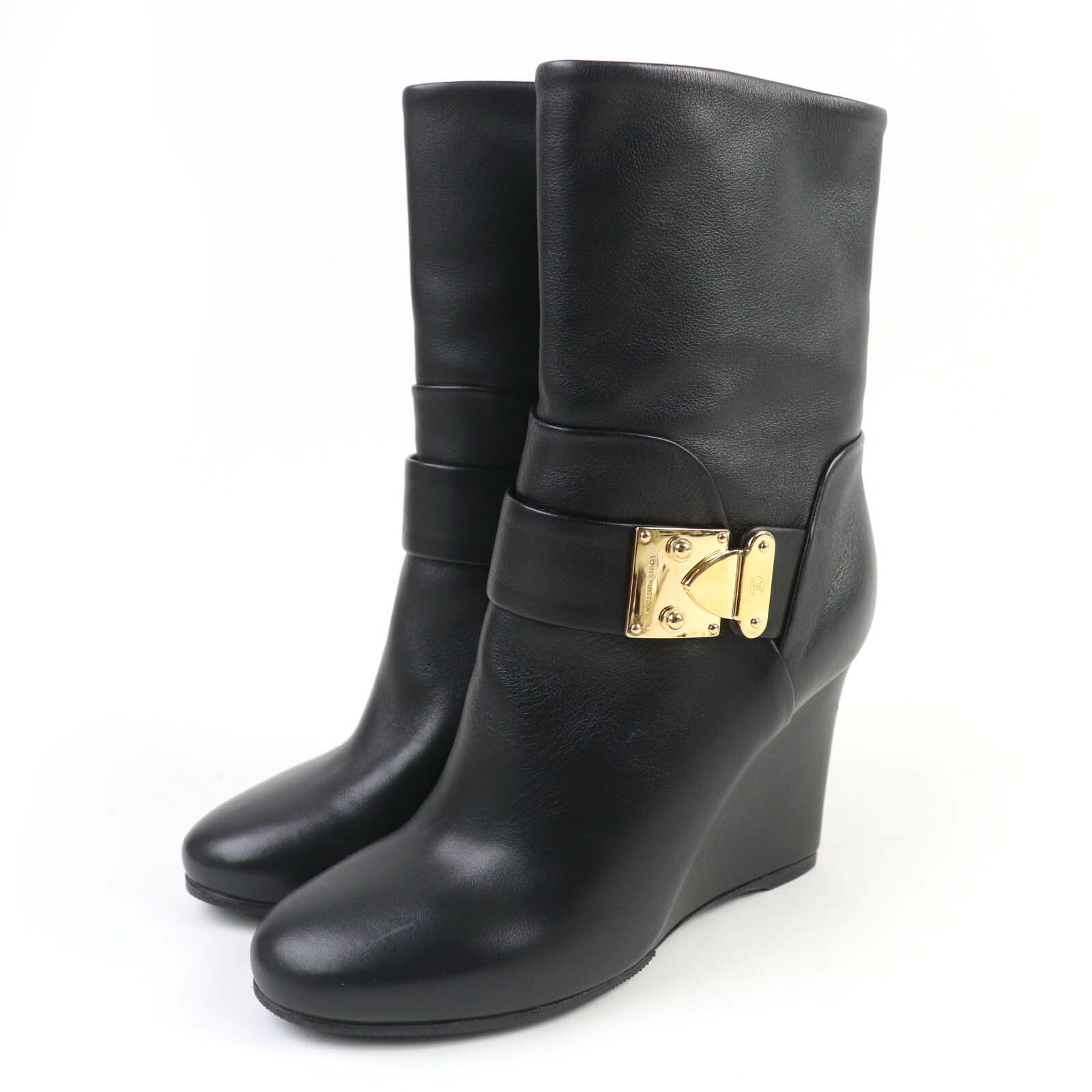 美品☆LOUIS VUITTON ルイヴィトン バックル付 ウェッジソール レザー ショートブーツ ・・・