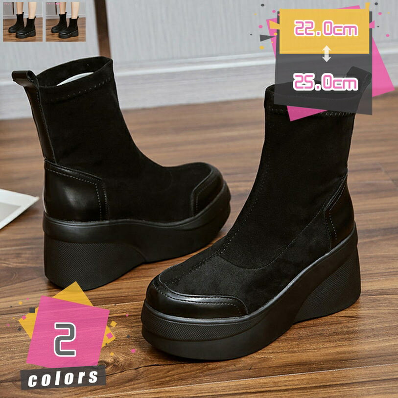 1000円OFFクーポン ウェッジヒール ストレッチブーツ レディース 厚底 ショートブーツ 歩きや・・・