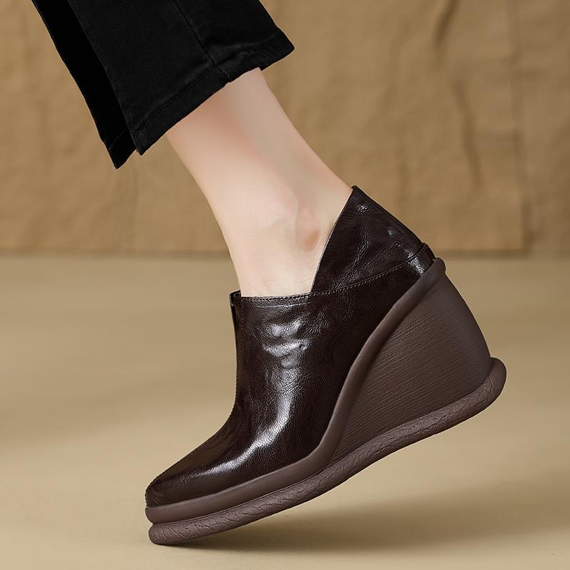 ブーティー かっこいい ウェッジソール 8cm ブーツ パンプス レディース 本革 シープスキン レ・・・