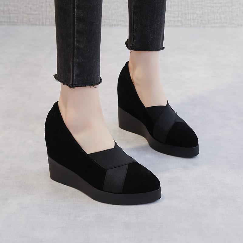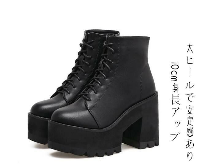 ブーティ 黒 スエード パンプス 10cm 超厚底 ウェッジソール 身長アップ 厚底 スリッポン か・・・
