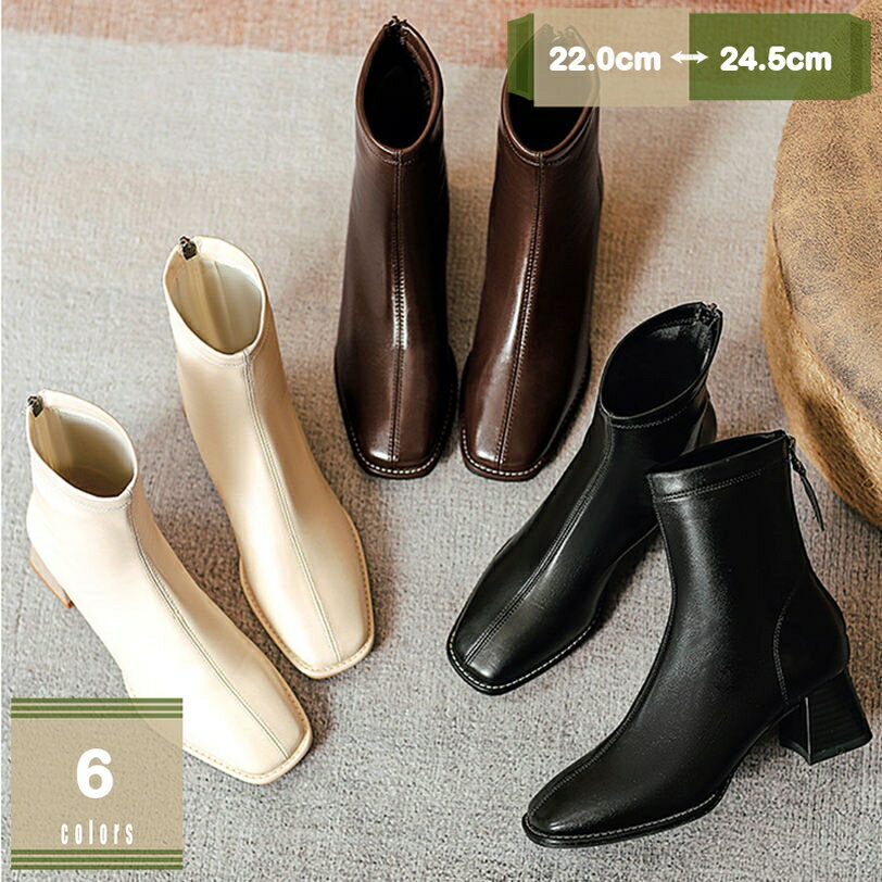 777円OFFクーポン ショートブーツ ブーツ ミッドヒール 美脚 レディース 太ヒール バックジッ・・・