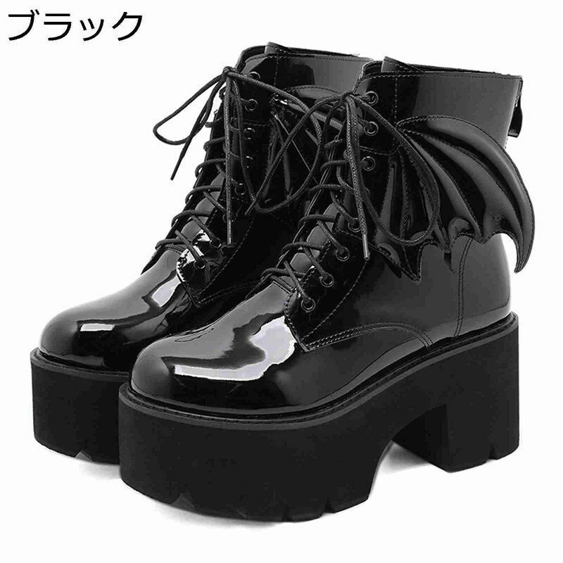 厚底 ショートブーツ パンク レディース ミドルブーツ ハイヒール エナメル チャンキーヒール 女性・・・