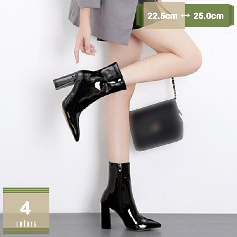 777円OFFクーポン ブーティ 歩きやすい チャンキーヒール セクシー ショートブーツ エナメル ・・・