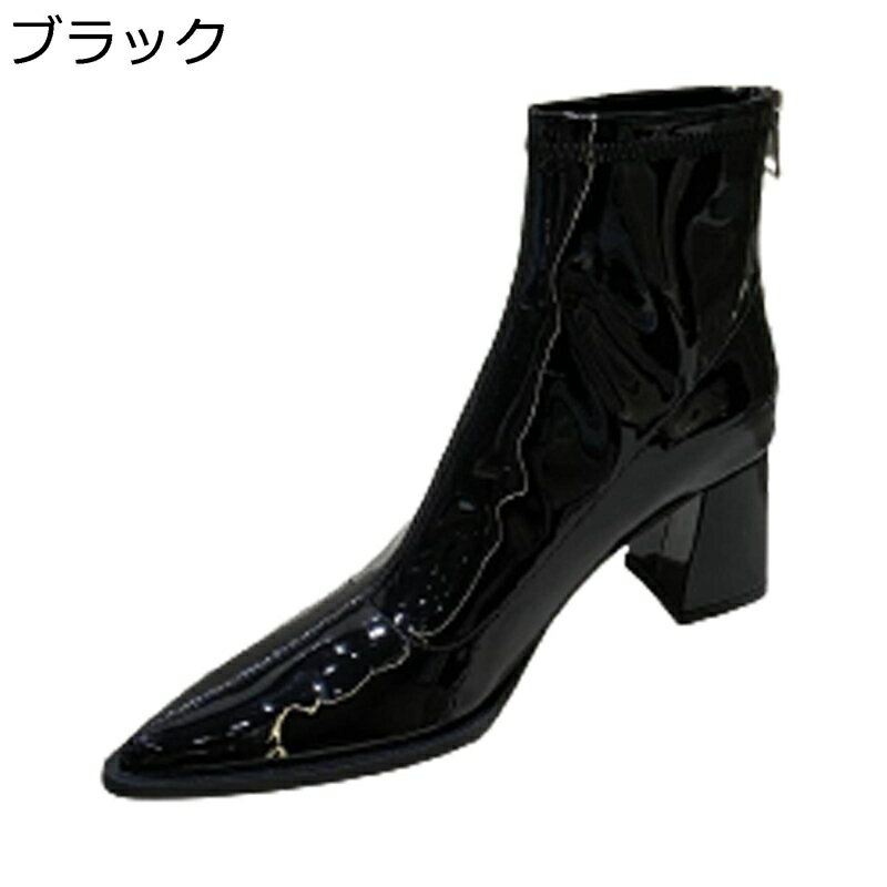 ショートブーツ ポインテッドトゥ レディース ブーティ ハイヒール7cm エナメル感 セクシー 欧米・・・