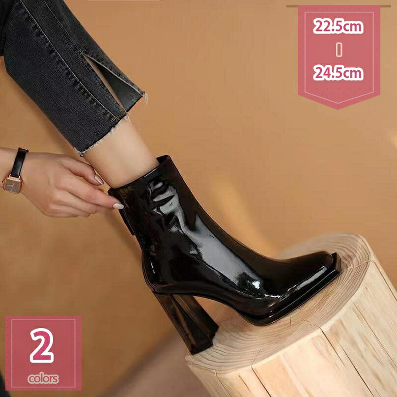1000円OFFクーポン 厚底 ブーティ ブーティー レディース パテントレザー ショートブーツ 黒・・・