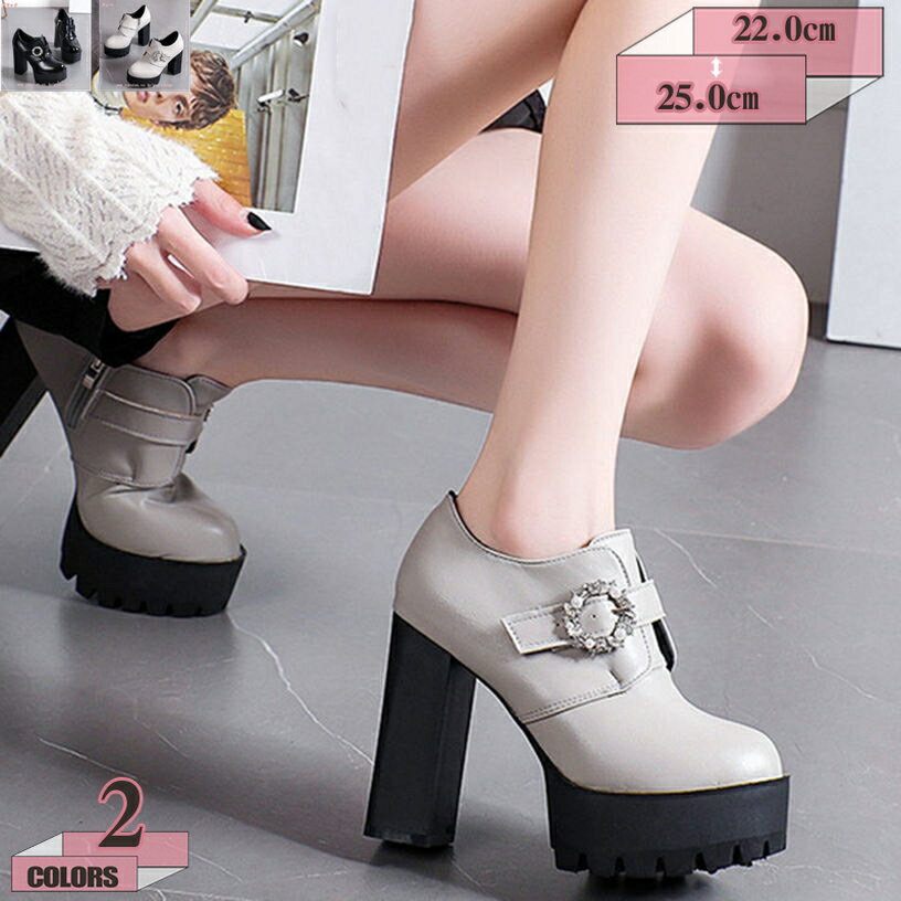 500円OFFクーポン ブーツ ブーティパンプス スリッポン ビジュー 厚底 ハイヒール ダブルベル・・・