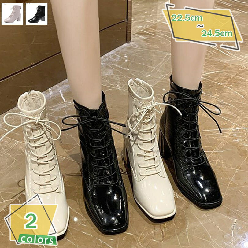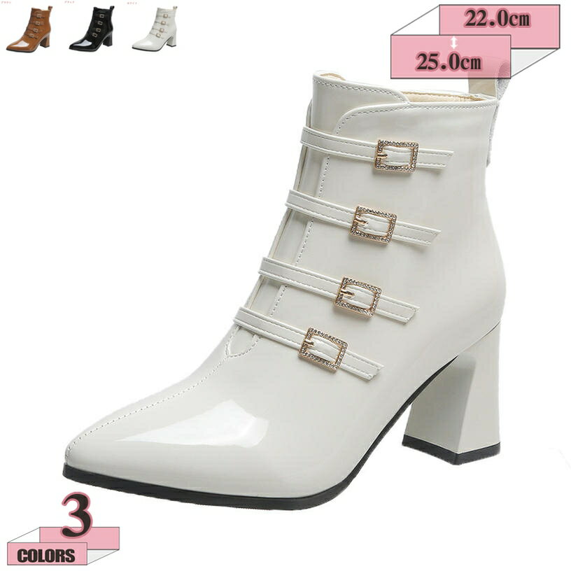 777円OFFクーポン ブーティー レディース ブーツ 美脚 大人 7.5cmヒール エナメル カジ・・・