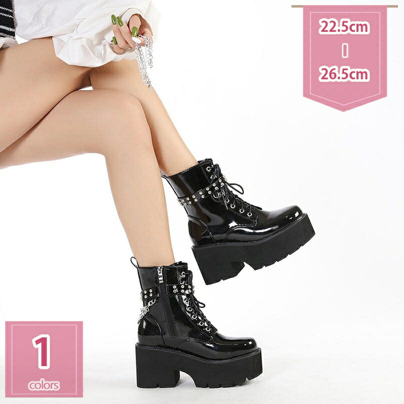 1000円OFFクーポン 厚底 ブーティ ブーティー レディース パテントレザー ショートブーツ 黒・・・
