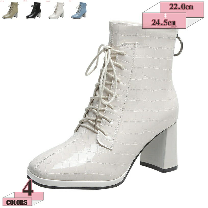1000円OFFクーポン ブーツ レディース ショートブーツ 7cm エナメル 編み上げブーツ 太ヒ・・・