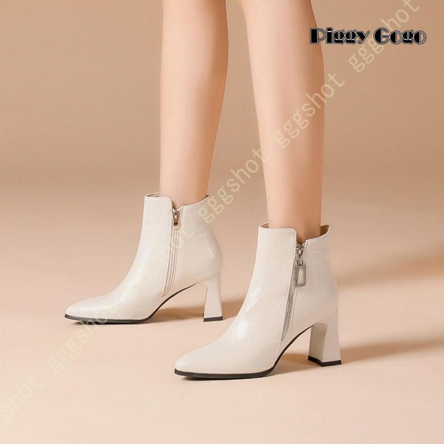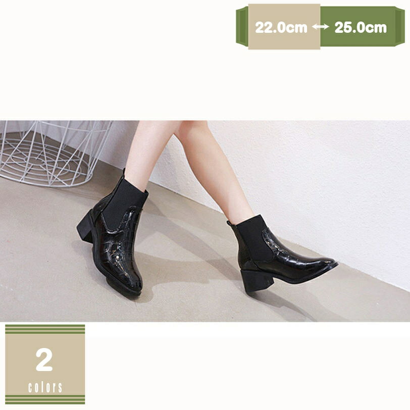 ショートブーツ 太ヒール エナメル調 とんがりトゥ レディース ショート丈 サイドジップ ブーティー・・・