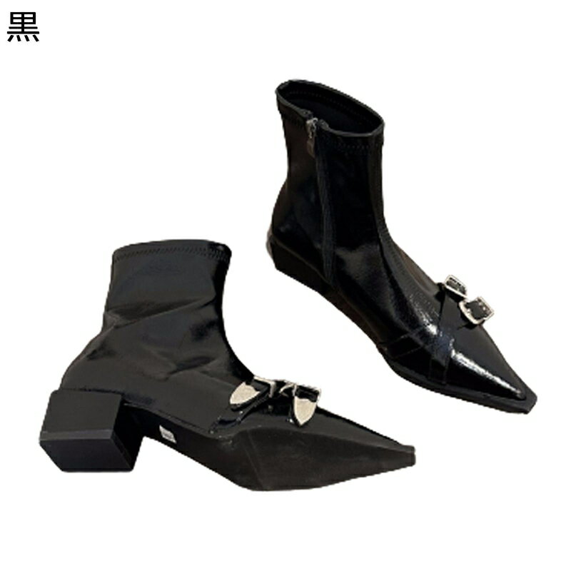 レディースブーツエナメル くしゅくしゅ ショートブーツ ブーティ ポインテッドトゥ ピンヒール バッ・・・
