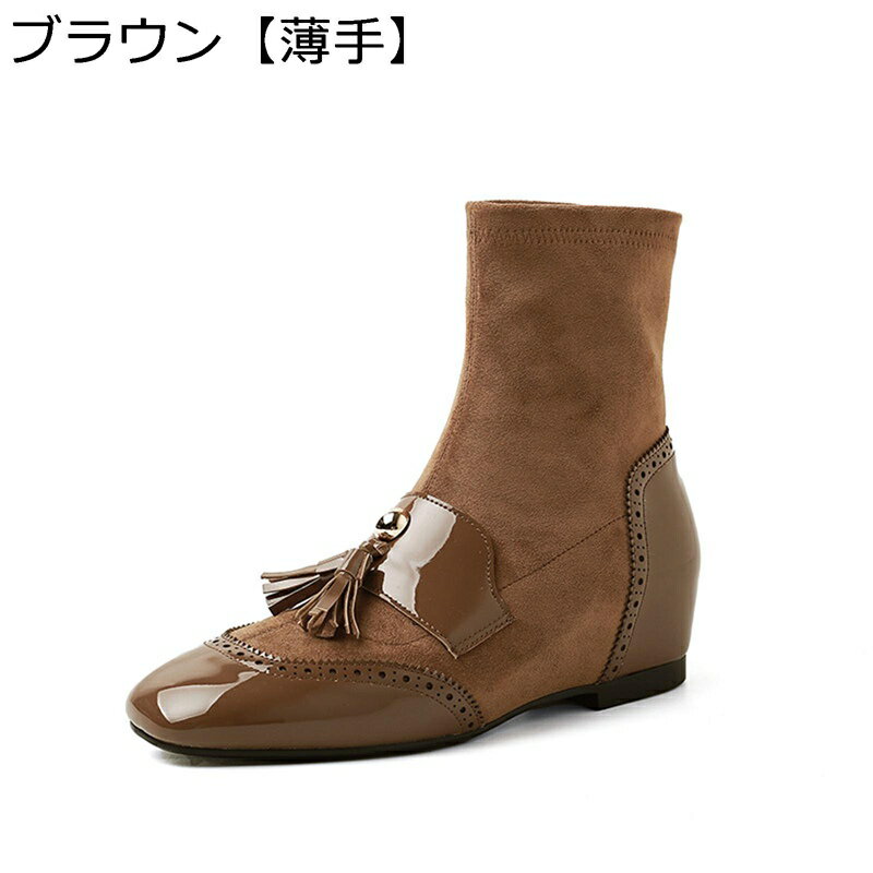 ブーティ スエード 本革 タッセル エナメル インヒール レディース ショートブーツ スクエアトゥ ・・・