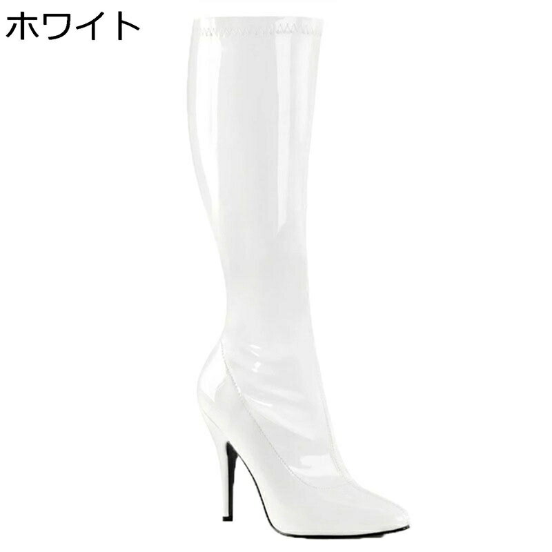 ハイヒール 12cm ロングブーツ レディース エナメル ポインテッドトゥ サイドジップ ブーティ ・・・