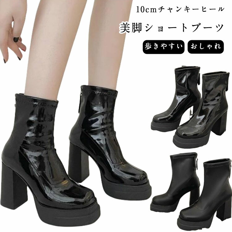 チャンキーヒール 痛くない 袴 レディース ショートブーツ 10cmヒール 太ヒール バックジップ ・・・