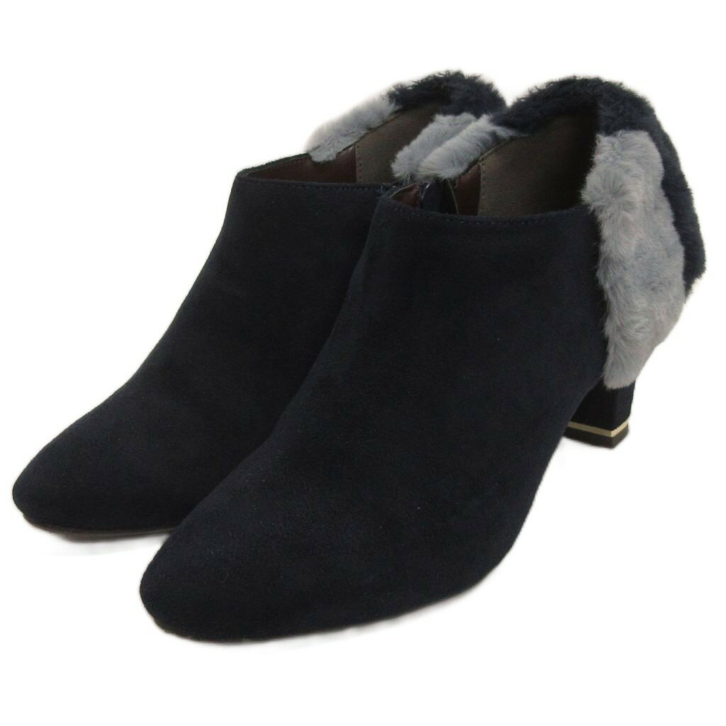 【中古】ルタロン Le Talon 美品 バック ファー ブーティー フェイクファー 紺 ネイビー ・・・