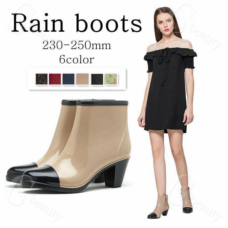 レインブーツ レインシューズ レディース ショート 6センチヒール 雨・晴れ兼用 撥水 ブーティ バ・・・
