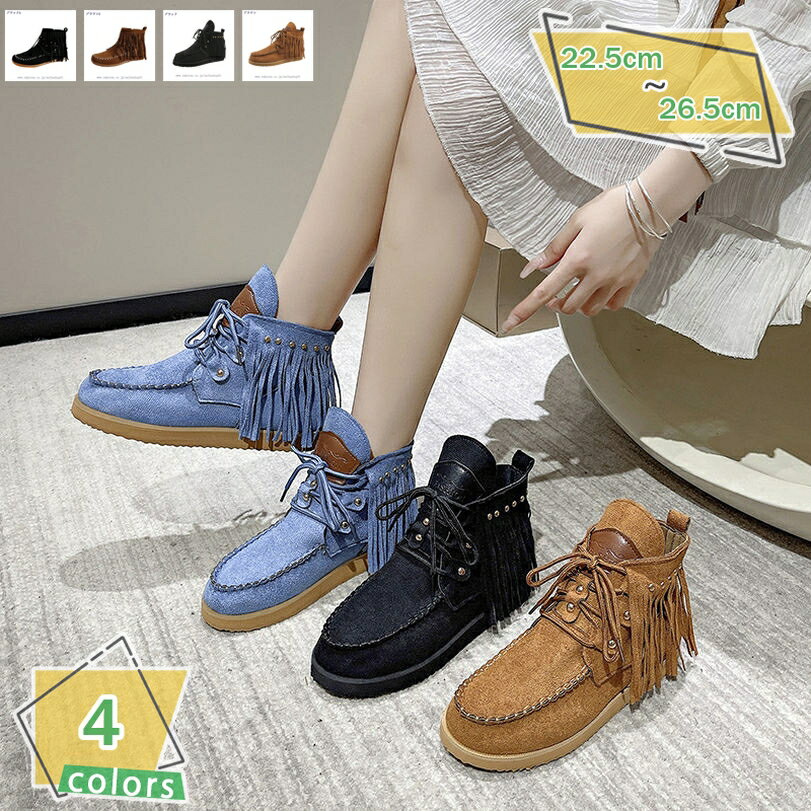 大きいサイズ ショートブーツ ブーティ 太ヒール フリンジ サイドジップ ブーティー 歩きやすい チ・・・