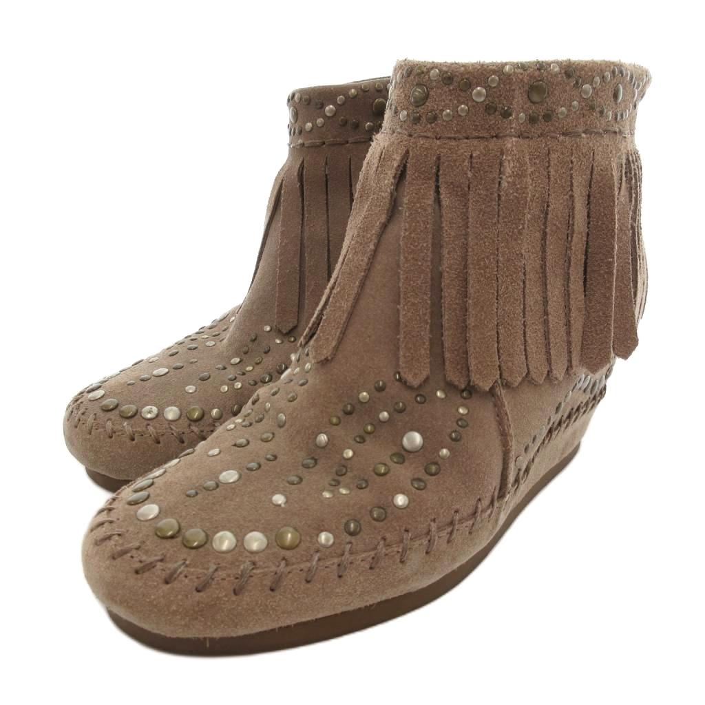 【中古】アッシュ ASH ブーティ ショートブーツ スタッズ フリンジ 35 茶 ブラウン /JS ・・・