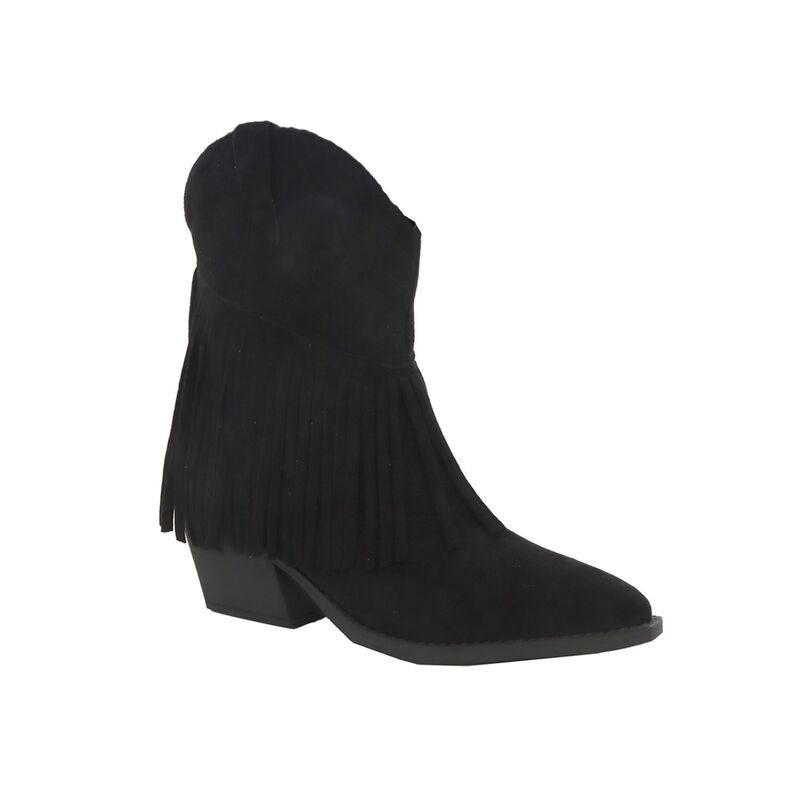 ショートブーツ スクエアトゥ ウエスタンフリンジ レトロ レディースシューズ【大きいサイズ レディー・・・