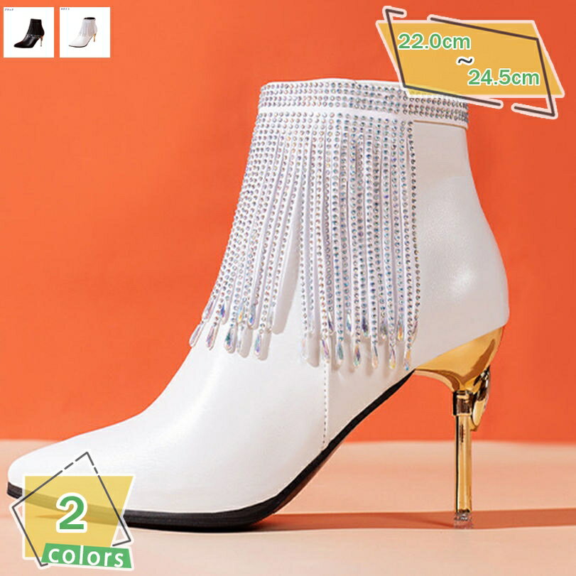 ブーツ ショートブーツ ブーティ フリンジ ポインテッドトゥ とんがり スエード ベージュ 黒 カー・・・