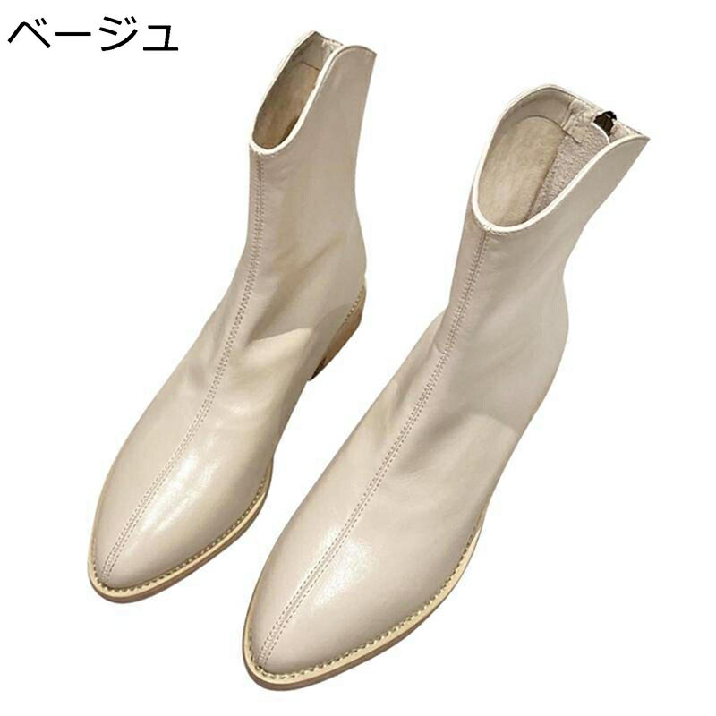 ブーティ レディース ショートブーツ 秋冬 ポインテッドトゥ ローヒール 粗いかかと バックジッパー・・・