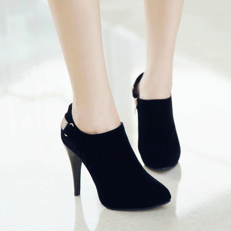 ストレッチ スエード調 ショートブーツ ブーティ ピンヒール 6cmヒール ポインテッドトゥ 美脚 ・・・