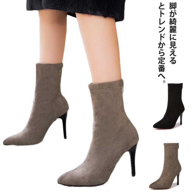 ショートブーツ ピンヒール レッドソール シューズ レディース ショート丈 長め トレンド 滑り止め・・・