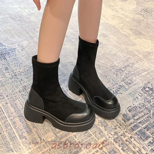 777円OFFクーポン 厚底 サイドジップ ブーツ レディース ラウンドトゥ ブーティー ショートブ・・・
