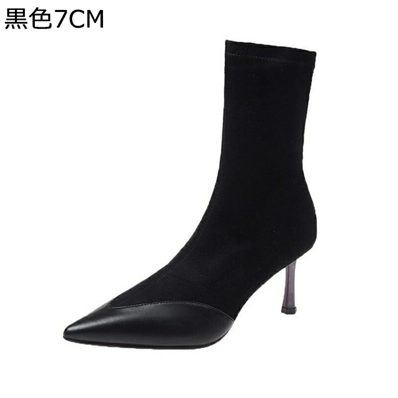 ブーティ レディース ショートブーツ 秋冬 ハイヒール ブラック 黒 ポインテッドトゥ ピンヒール ・・・