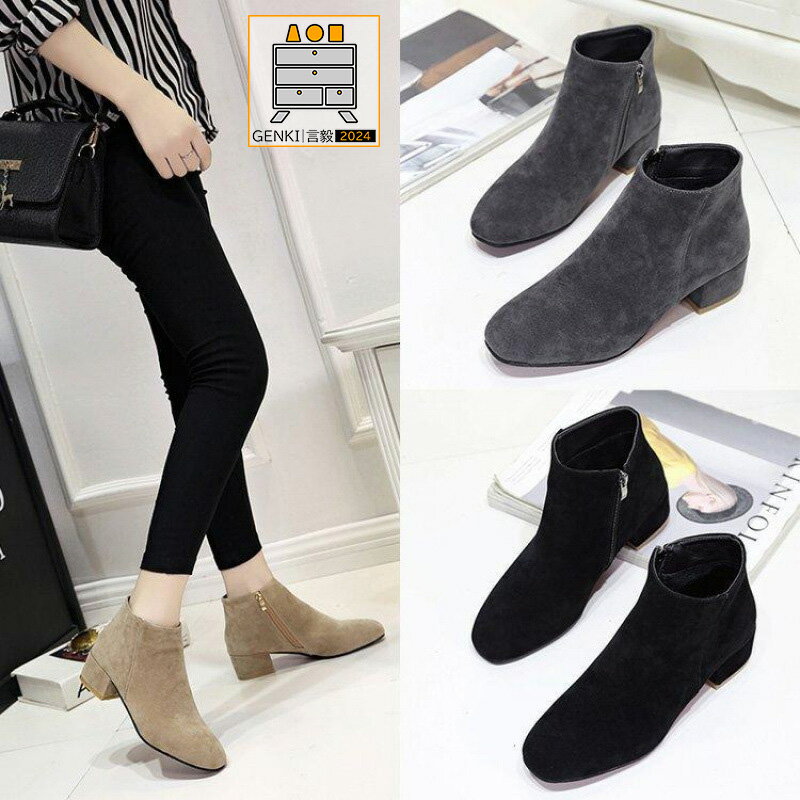 ショートブーツ レディース ローヒール ショートブーツ ブーティ ブラック 裏起毛