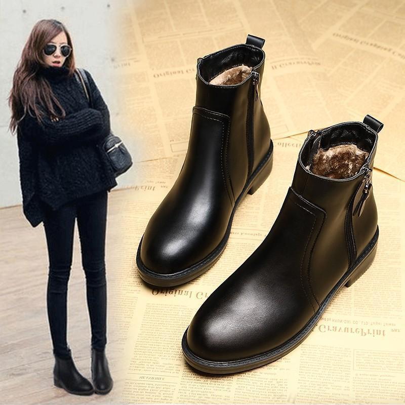 疲れない 冬秋 ブーティー 美脚 ローヒール 履きやすい シューズ 裏起毛 歩きやすい ショートブー・・・