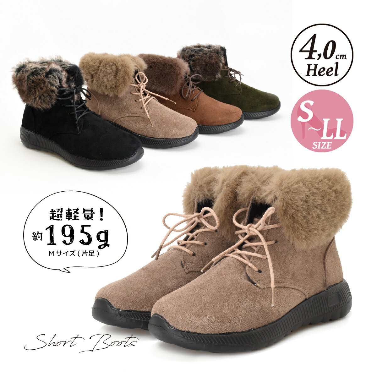 【送料無料 アウトレット 53%オフ】ショートブーツ 軽量 レディース ファー レースアップブーツ ・・・