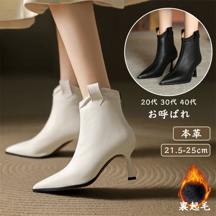 ショートブーツ 本革ブーツ レディース 歩きやすい ヒール ハイヒール ピンヒール 6.5cm レザ・・・