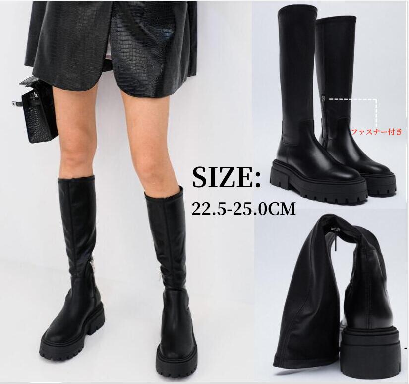 【レビュー特典】ショートブーツ レディース 厚底ブーツ 厚底ブーツ ミドル丈 PU 無地 太ヒール ・・・