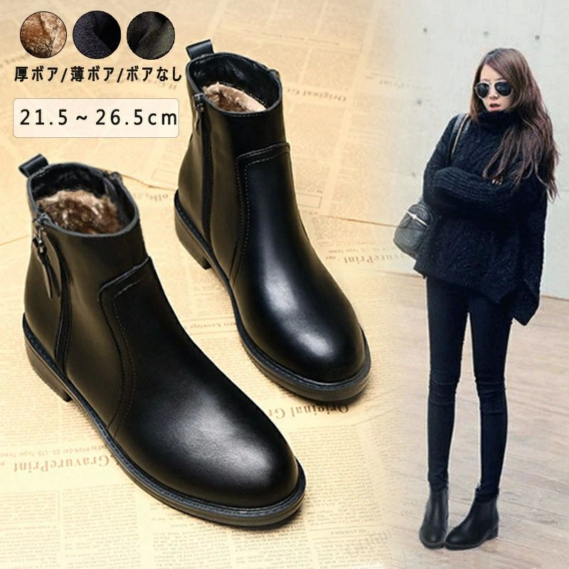 防 痛くない 歩きやすい ローヒール ペタンコ サイドジップ ブーティ 小さいサイズあり 大きいサイ・・・