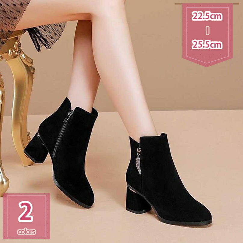 1000円OFFクーポン ショートブーツ レディース ローヒール ブーティ 太ヒール 安定感 ブーテ・・・