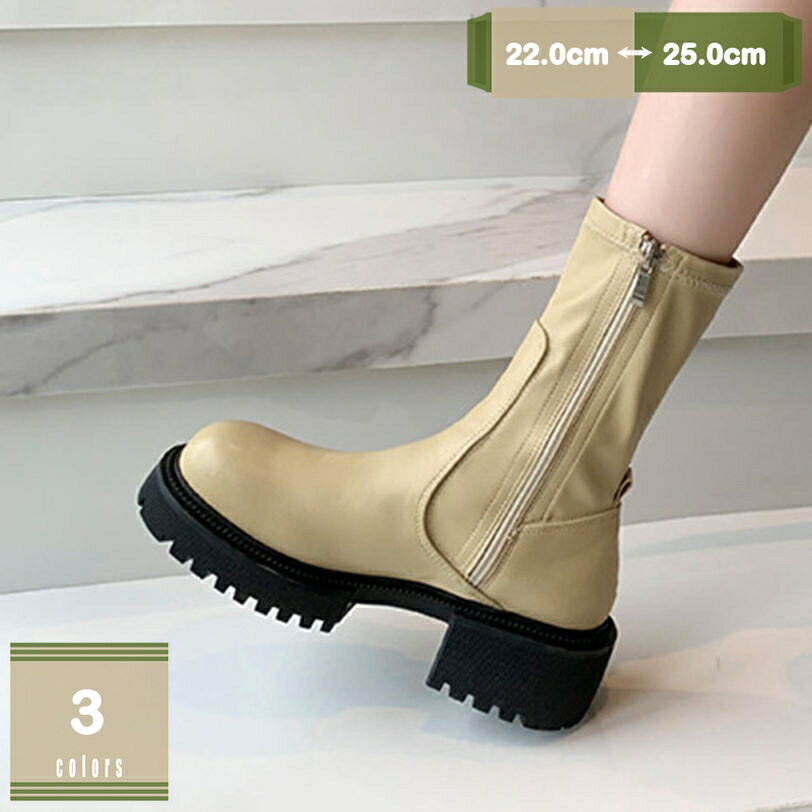 777円OFFクーポン ショートブーツ レディース 厚底 ブーツ 黒 ローヒール 歩きやすい 5セン・・・