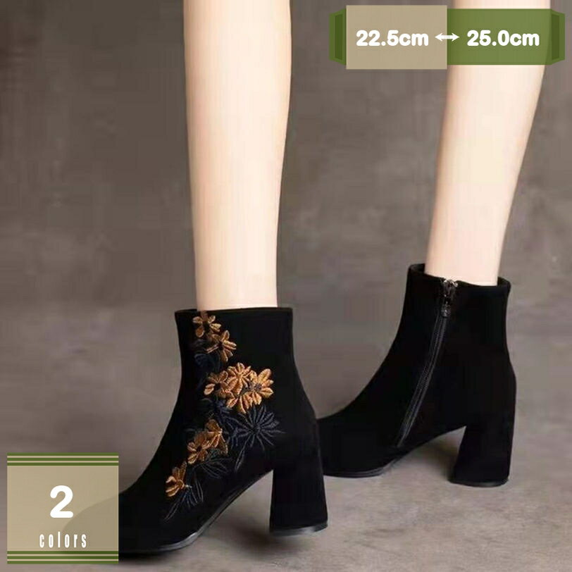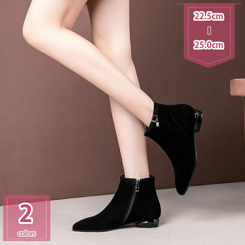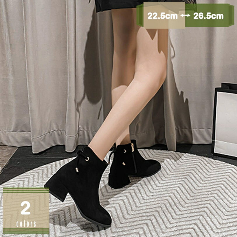 777円OFFクーポン ブーツ レディース 秋冬 ショートブーツ 黒 ローヒール ブーティ 2cmヒ・・・