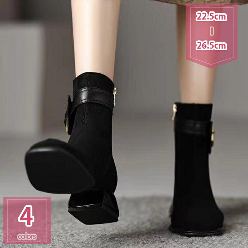 777円OFFクーポン 太ヒール ストレッチ ショートブーツ 3.5センチヒール レディース ブーツ・・・