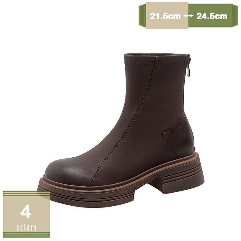 777円OFFクーポン 厚底ブーツ 履きやすい ファスナー付き ショートブーツ ブーツ ストレッチ ・・・