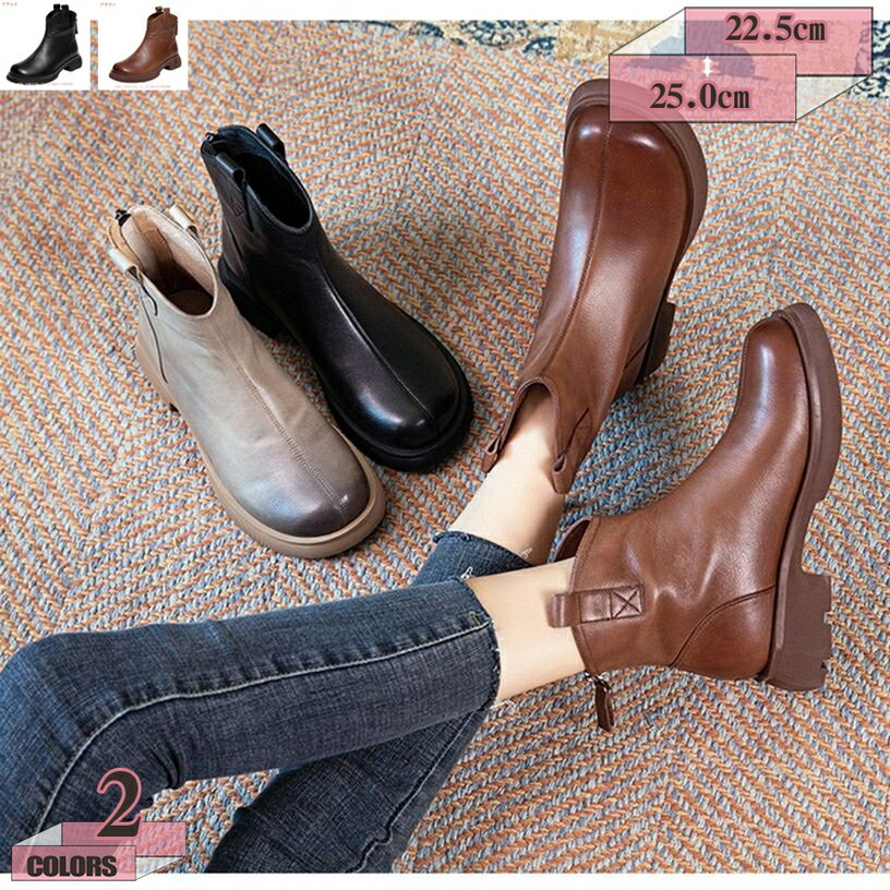 1000円OFFクーポン レディース ショートブーツ 本革 柔らかい ローヒール バックジップ カジ・・・