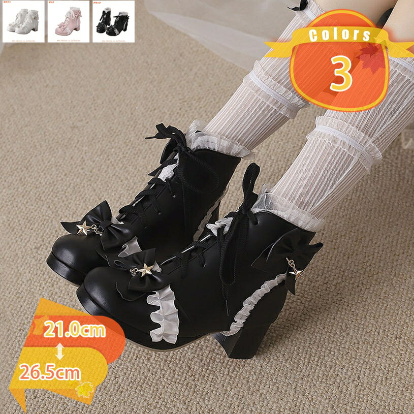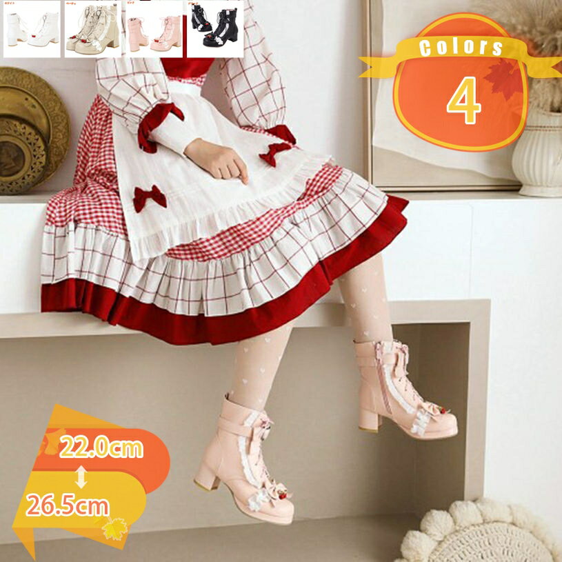 1000円OFFクーポン レディース 可愛い ショートブーツ 厚底 お嬢様風 ロリータ シューズ ハ・・・